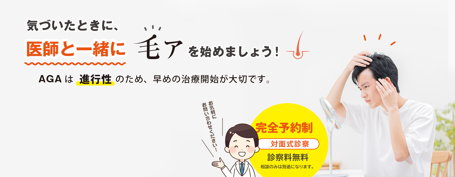 医師による頭皮チェックで、今の状態を知ることができます。抜け毛・ボリューム減少は、AGAのサインかもしれません。