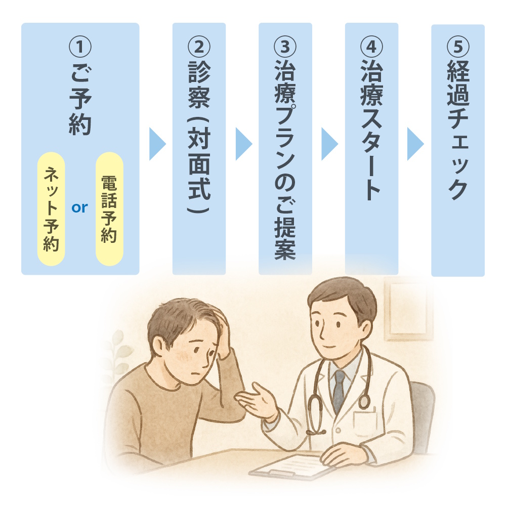 - 治療スタート医師の処方に基づき治療開始。(初回は対面診療)